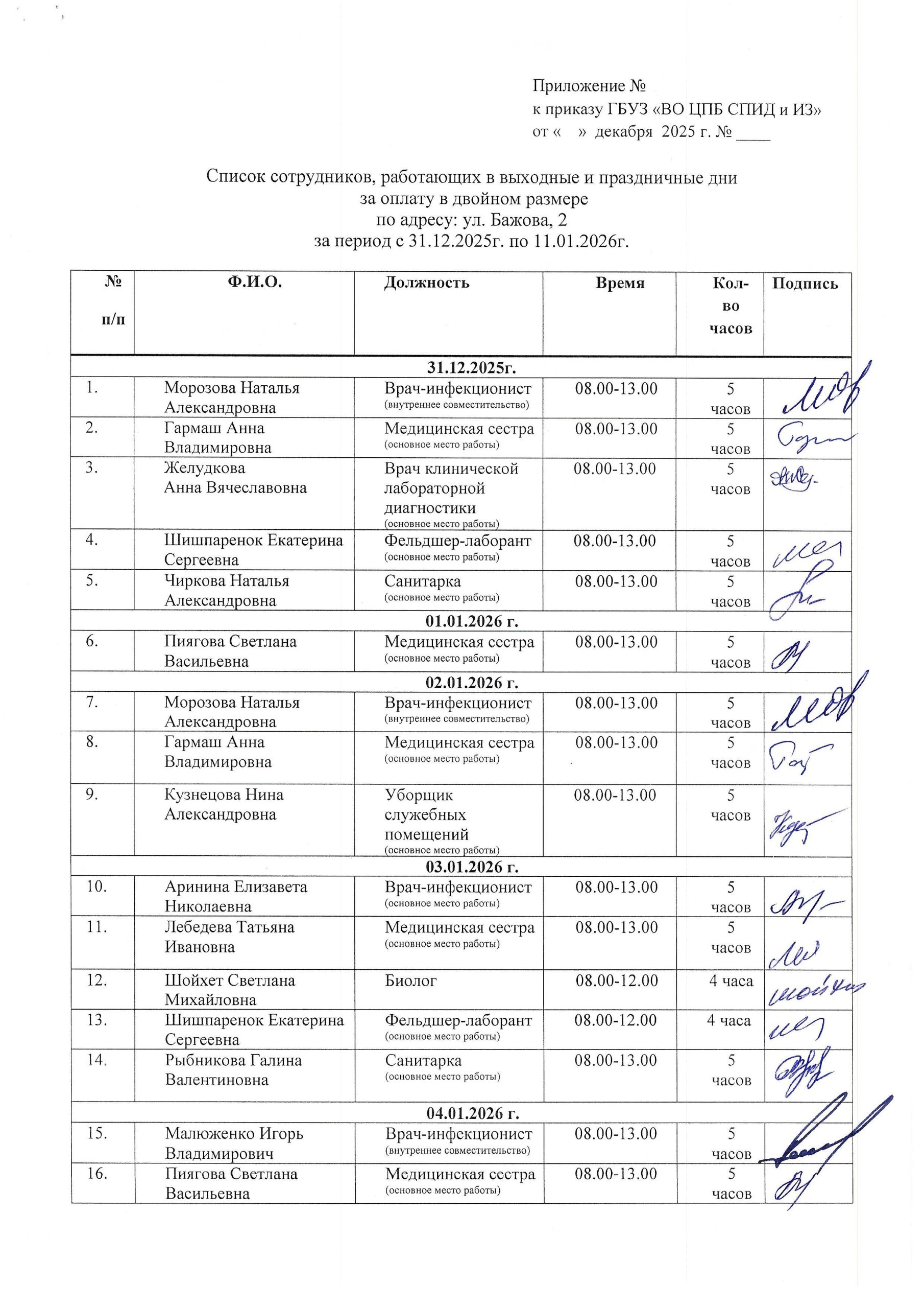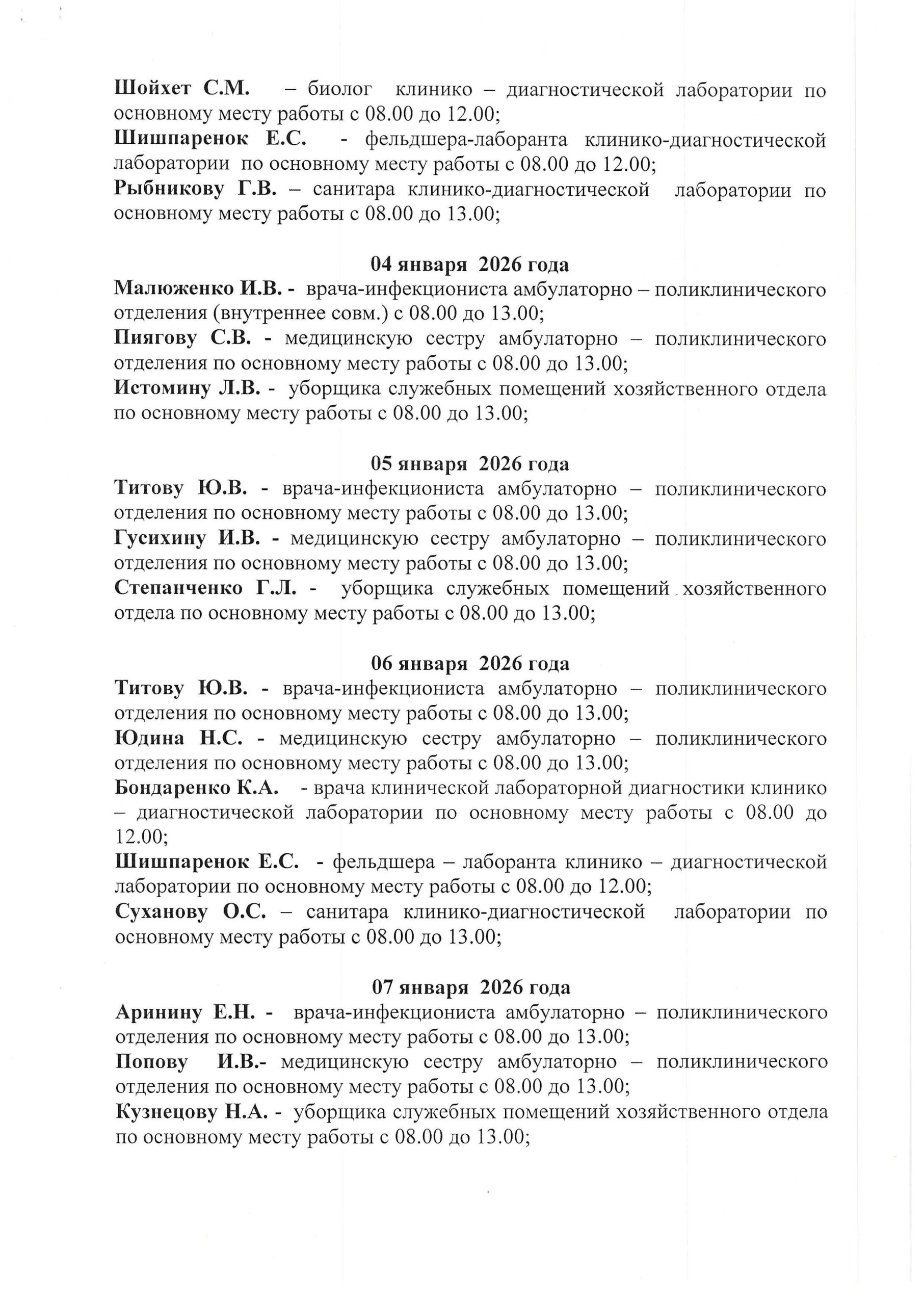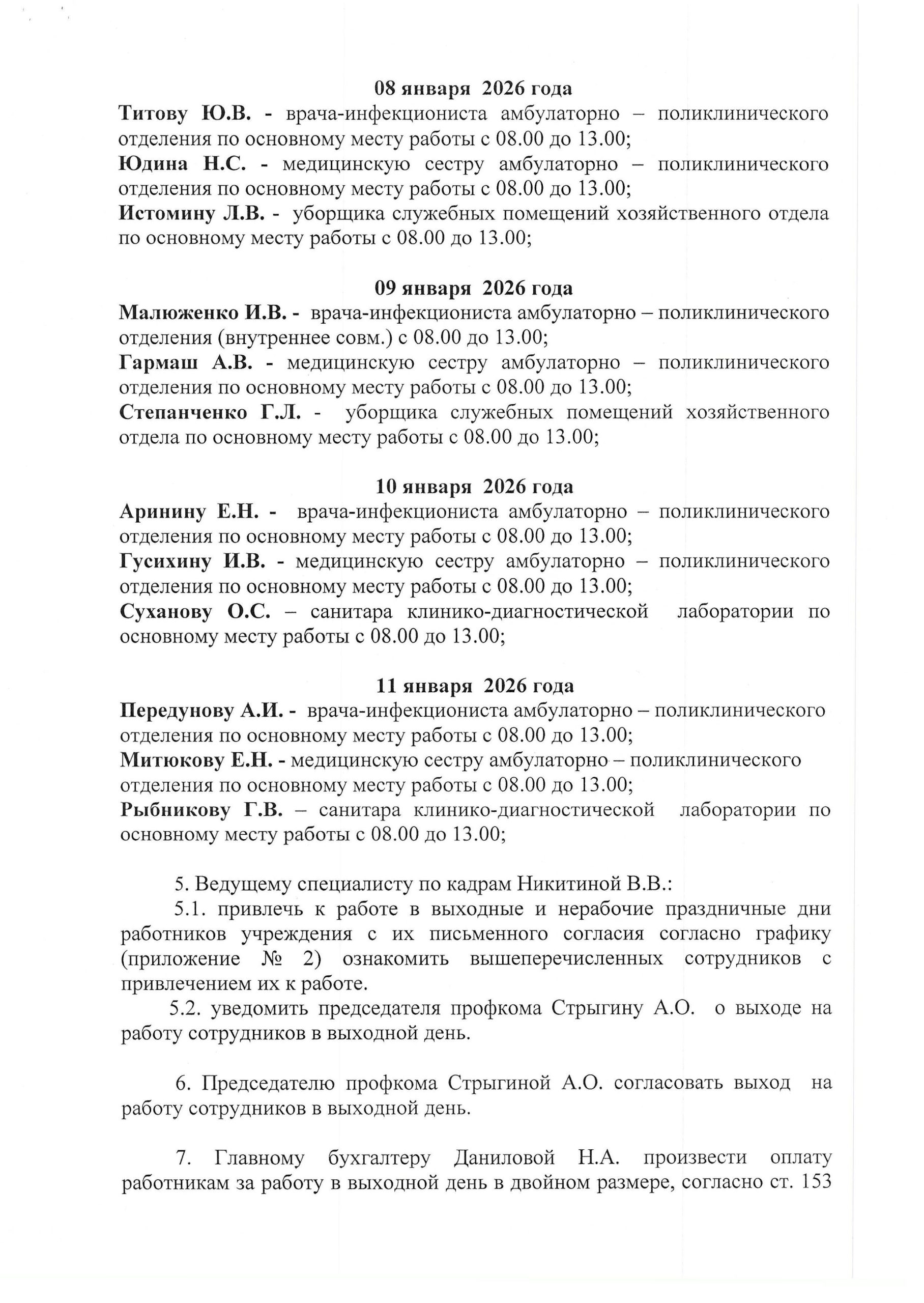 Приказ «О назначении ответственных лиц, мерах по обеспечению безопасности в государственном бюджетном учреждении здравоохранения «Волгоградский областной Центр по профилактике и борьбе со СПИД и инфекционными заболеваниями», Волгоград, и об организации медицинской помощи в период предпраздничных, праздничных и выходных дней с 30 декабря 2025 года по 12 января 2026 года