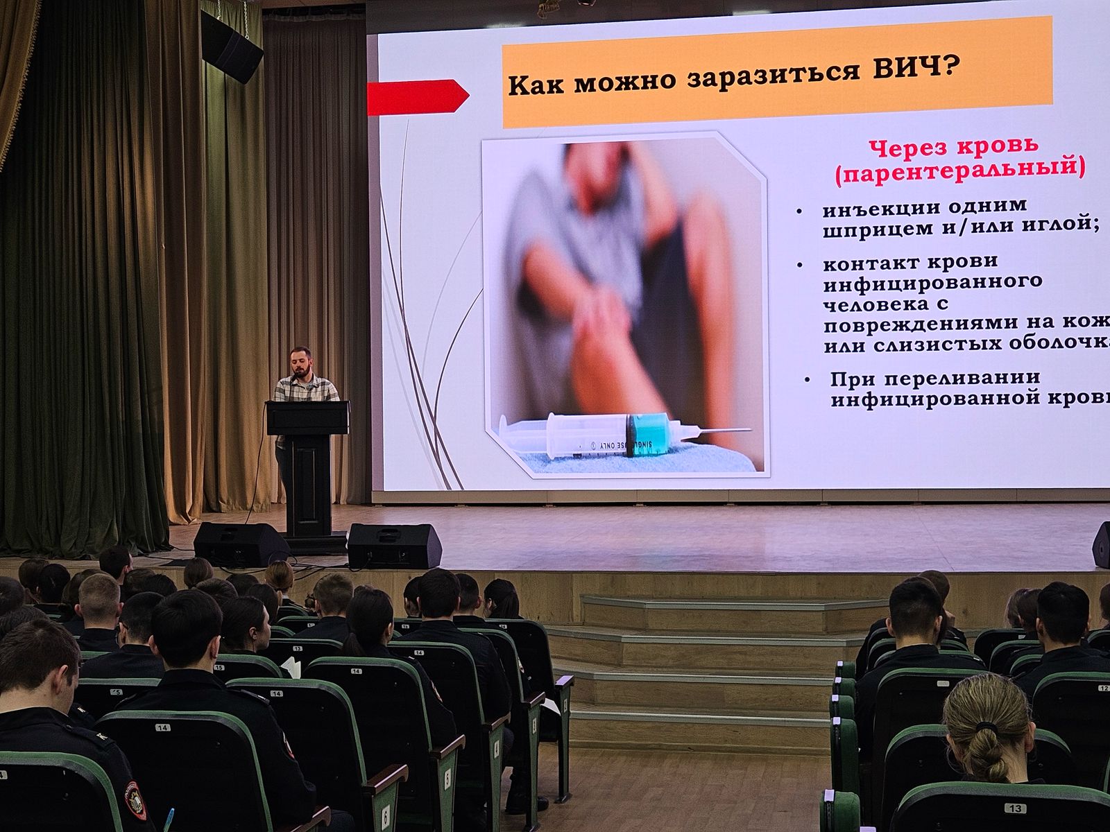 В Академии ВА МВД России прошла важная лекция для слушателей и курсантов, посвященная мерам индивидуальной и коллективной профилактики заражения вирусом иммунодефицита человека (ВИЧ), путям распространения инфекции и способам предотвращения болезни.
